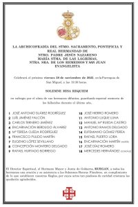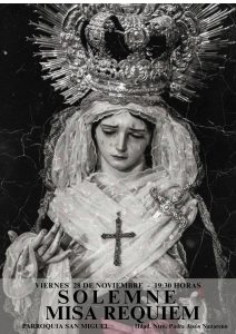 Misa hermandad de los hermanos difuntos a las 19:30h en su sede canónica de la Parroquia de San Miguel.