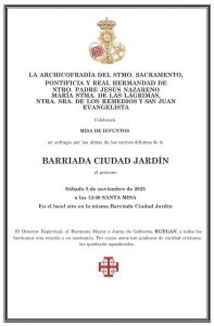 La hermandad, celebrará MISA DE DIFUNTOS en sufragio por las almas de los vecinos difuntos de la BARRIADA CIUDAD JARDÍN el próximo Sábado 8 de noviembre de 2025 a las 12:30 SANTA MISA , en el local sito en la misma Barriada Ciudad Jardín.